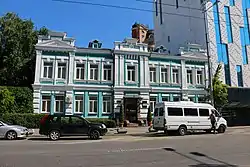 Будинок, що виходить на вулицю Жилянську, є найвиразнішим і найціннішим елементом комплексу, в якому збереглися первісний характер фасадів та внутрішнє планування. Це — цегляний, двоповерховий, на бутовому стрічковому підмурку, будинок у неогрецькому стилі. Головний вхід фланкують рустовані лопатки, на другому поверсі замість лопаток застосовано мотив здвоєних канелюрованих пілястрів коринфського ордера, що фланкують віконний проріз. Поле аттика акцентує виразна люкарна, біля неї — рельєф з датою «1860-1863». Обидві бічні частини увінчано високими ступінчастими аттиками з рельєфним меандровим фризом та додатковим виразним елементом — трикутним фронтоном, що оздоблений ліпленими елементами рослинного рисунка. Вікна на другому поверсі оформлені профільованими рамковими лиштвами, сандриками. Фриз проміжних ділянок, заповнений ліпленням рослинних мотивів.[1]