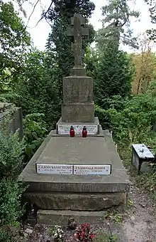 Похований у родинному гробівці на 45 полі Личаківського цвинтаря.
