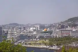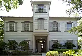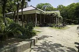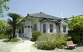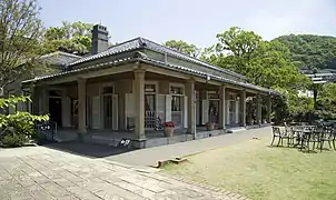 Перші садиби в районі були споруджені у 1863 році за проектом Коями Хіденосіна. У них проживали європейські та північноамериканські торгівці. Серед них був шотландець Томас Ґловер, який провів більшу частину свого життя в Японії, докладаючи чимало зусиль до її модернізації. Його садиба служила місцем переховування для бунтарів ханів Тьосю і Сацума, британських шпигунів і військових. Садиба Ґловера є найстарішою архітектурною спорудою західного стилю в Японії. Ім'ям цього торговця названий сучасний парк.