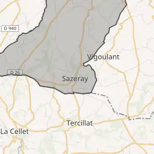 - Sazeray sur le site de l'Insee, наведено за французькою вікіпедією
