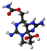 | Систематична назва | (3aS-(3a-α,4-α,10aR*))-2,6-диаміно-4-(((аміно-карбоніл)окси)метил)-3a,4,8,9-тетрагідро-1H,10H-піроло(1,2-c)пурин-10,10-діол |
