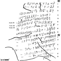 Найдавніша абетка — напис з Есікського кургану[6] та напис з Ай-Ханума[7] (IV—II ст. до н. е.).[2] Обидва написи мають п'ять спільних знаків (за нумерацією C. Rapin — 4, 6, 12, 13, 18 (див. нижче)) й, можливо, походять від арамейського.[7]