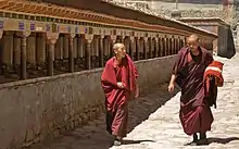 Монастир Сак'я контролювався аристократичним кланом Кхон, з числа представників якого виходили ієрархи цього напряму буддизму. Школа Сак'я не вимагала обов'язкової безшлюбності у духовних осіб, але істотним обмеженням тут була вимога припинити статеве життя після народження спадкоємця. Однак сак'яські ієрархи приймали чернечі обітниці, що призвело до встановлення практики передачі сану настоятеля і першоієрарха школи від дядька до племінника в рамках клану Кхон.