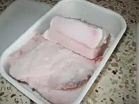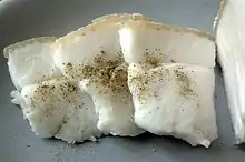 ![]() Солоне свиняче сало, посипане меленим чорним перцем | |