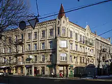 - Неоготичний прибутковий будинок на нинішній вулиці Франка, 17, на розі із вулицею Левицького (1907)[14].