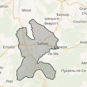 - Розташування муніципалітету Салів на мапі Франції та сусідні муніципалітети