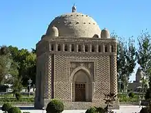 Ще одним пам'ятником, що вказує на зв'язку Саманідів із буддизмом, є символ, зображений на внутрішніх стінах мавзолею Саманідів у Бухарі. Цей символ являє собою складну геометричну композицію, що складається з вбудованих один в одного квадратів і кола в середині. Точно такий же символ зображений в настінних розписах з сюжетними зображеннями буддійських переказів в печерному комплексі Дуньхуан, який був одним з найбільших буддійських культових центрів Центральної та Східної Азії епохи раннього середньовіччя.