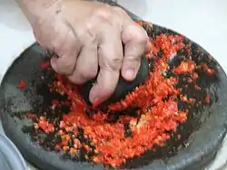 Традиційно свіжий самбал виготовляють вручну в кам'яній ступці з товкачкою.