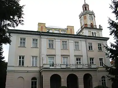 Первісна ратуша була дерев'яною. Вона згоріла 1498 році разом з усіма навколишніми будинками. На початку XVI ст. збудували нову одноповерхову ратушу з невисокою вежею і годинником. Ця ратуша теж згоріла (1637 р.), а на її місці у 1638–1668 роках звели двоповерхову муровану з 40-метровою 8-гранною вежею та ліхтарем. Донині зберігся стародавній ренесансний портал. І хоча документів про його виготовлення не збереглося, його форми, чистота стилю промовляють про те, що цей портал виготовлено разом з первісною будовою і що його майстер був під впливом італійських майстрів, які працювали у Кракові. 1844 р. ратушу реконструйовано — добудовано вхідні портики, змінено місце входу і влаштовано нові фасади.