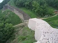 Мури фортеці, споруджені на вертикальних скелястих кручах, в поєднанні з ними утворюють непрохідну перешкоду висотою від 13 до 20 метрів. Ширина мурів варіюється від 5 до 8 метрів. Уздовж кам'яних мурів споруджувалися земляні вали.