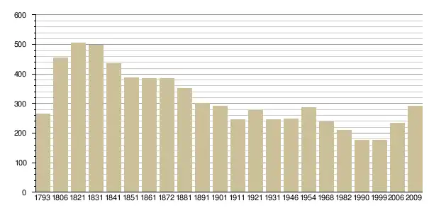 Динаміка населення (base Cassini de l'EHESS pour les nombres retenus jusque 1962[3], base Insee à partir de 1968 (population sans doubles comptes puis population municipale à partir de 2006)[4] · [5] ):