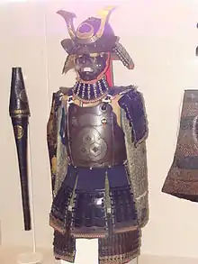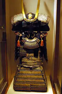 ![]() Танко (кіраса повернута спиною), шоломи сьокаку-цукі-кабуто (ближній) і мабідзасі-цукі-кабуто (дальній). Токійський національний музей |