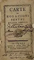 - «Carte de rogacioni pentru evlavia homului chrestin» (Відень, 1779),