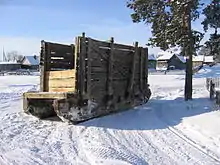 - Розвальні — низькі широкі сани з боками, що розширяються від передка