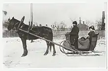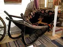 Жіночі сани, однакові за формою з чоловічими, були трохи ширші й оснащувалися по сторонах жердинами, на які навішувалося сукно; таким чином сани закривалися і зверху, і з боків.