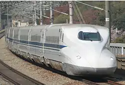 ![]() Потяг серії N700 між станціями Окаяма та Айой | |