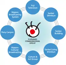 Видавництва газет: "Санкей Сімбун", "Санкей Спортс", "Фуджи Юкан", "Кейба" і т.д.