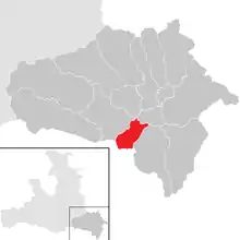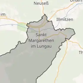 Комуна Санкт-Маргаретен на карті округи Тамсвег. У лівому нижньому кутку показано розташування округи Тамсвег на карті федеральній землі Зальцбург.