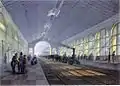 1868 року у зв'язку зі значно збільшеним пасажиропотоком була розпочата реконструкція Миколаївського вокзалу. Був прибудований двоповерховий флігель для прийому багажу, праве крило будівлі з'єднали з царськими покоями.