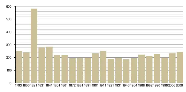 Динаміка населення (base Cassini de l'EHESS pour les nombres retenus jusque 1962[3], base Insee à partir de 1968 (population sans doubles comptes puis population municipale à partir de 2006)[4] · [5] ):