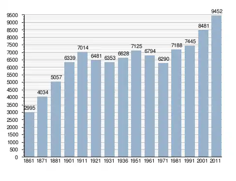 Станом на 31 грудня 2014 року в муніципалітеті офіційно проживало 2395 іноземців з 27 країн, серед них 553 громадяни країн Євросоюзу та 1 громадянин України.[4]