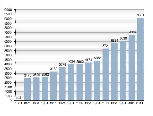 Станом на 31 грудня 2014 року в муніципалітеті офіційно проживав 981 іноземець з 51 країни, серед них 188 громадян країн Євросоюзу та 26 громадян України.[4]