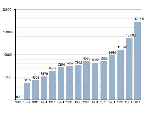 Станом на 31 грудня 2014 року в муніципалітеті офіційно проживало 1156 іноземців з 51 країни, серед них 535 громадян країн Євросоюзу та 22 громадяни України.[4]