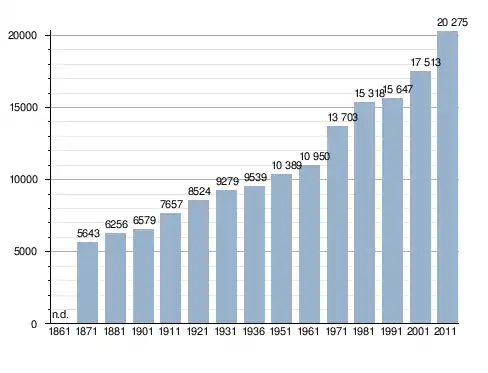 Станом на 31 грудня 2014 року в муніципалітеті офіційно проживали 4083 іноземці з 66 країн, серед них 1096 громадян країн Євросоюзу та 36 громадян України.[4]
