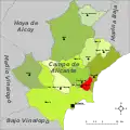 Розташування муніципалітету Сан-Джоан-д'Алакант у комарці Кампо-де-Аліканте