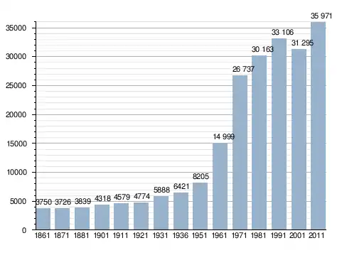 Станом на 31 грудня 2014 року в муніципалітеті офіційно проживало 5865 іноземців з 96 країн, серед них 1374 громадяни країн Євросоюзу та 321 громадянин України.[4]