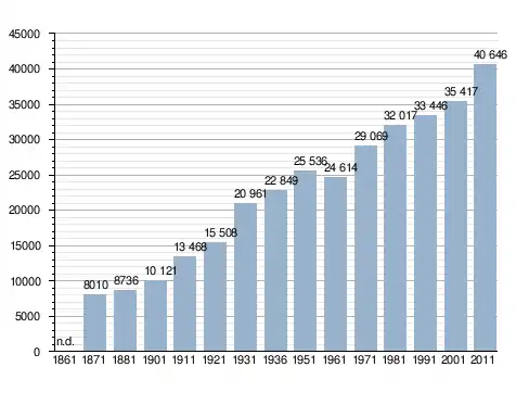 Станом на 31 грудня 2014 року в муніципалітеті офіційно проживало 4649 іноземців з 82 країн, серед них 1348 громадян країн Євросоюзу та 309 громадян України.[4]