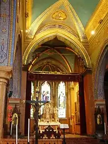 Церква Сан-Лазаро, хоча і кілька разів оновлювалася протягом століть, зберігає стиль арки 14-го століття. Церква була відновлена екстенсивно Мхітаром в 1722 році, через п'ять років після поселення вірменських ченців. Він повністю відновив вівтар. Його апсида була розширена в 1899 році насамперед додаванням неоготичних елементів. У церкви є неоготичний інтер'єр. Головний вівтар в стилі бароко. Три головних вікна апсиди вівтаря мають вітражі, які зображені зліва направо: Саак Партев, Святий Лазар і Месроп Маштоц. У церкві є фрески і картини Антоніо Ермолао Паолетті, що зображують Святого Петра, Святого Павла, Івана Хрестителя і Святого Стефана. Могила Мехітара знаходиться в передній частині вівтаря.