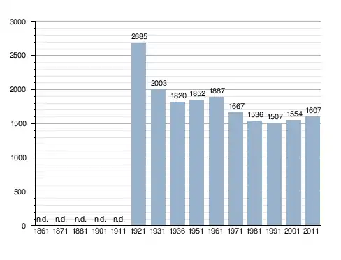 Станом на 31 грудня 2014 року в муніципалітеті офіційно проживали 73 іноземці з 15 країн, серед них 19 громадян країн Євросоюзу та 2 громадяни України.[5]