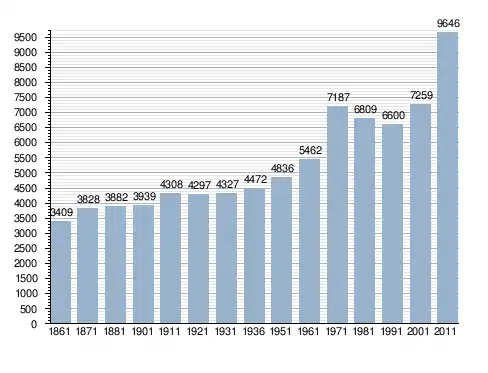 Станом на 31 грудня 2014 року в муніципалітеті офіційно проживало 466 іноземців з 37 країн, серед них 285 громадян країн Євросоюзу та 3 громадяни України.[4]