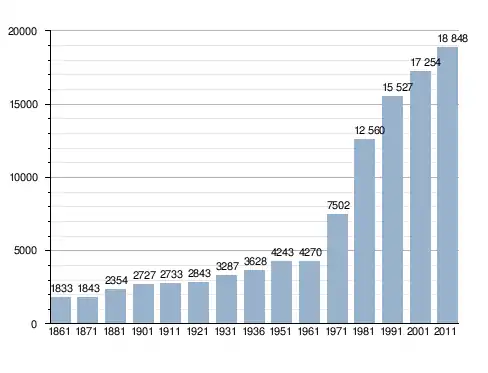 Станом на 31 грудня 2014 року в муніципалітеті офіційно проживало 1649 іноземців з 49 країн, серед них 1044 громадяни країн Євросоюзу та 19 громадян України.[4]