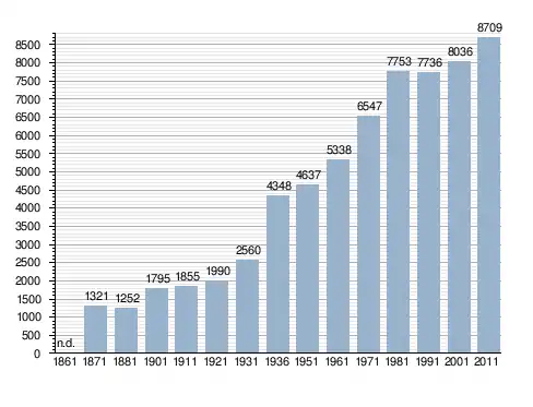 Станом на 31 грудня 2014 року в муніципалітеті офіційно проживало 1410 іноземців з 39 країн, серед них 245 громадян країн Євросоюзу та 16 громадян України.[4]