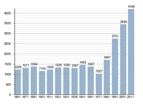 Станом на 31 грудня 2014 року в муніципалітеті офіційно проживали 463 іноземці з 44 країн, серед них 133 громадяни країн Євросоюзу та 16 громадян України.[4]