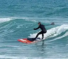 2. Серфінг з веслом (SUP wave) - змагання із серфінгу з веслом. В цій дисципліні виступи атлетів оцінюються за правилами традиційного серфінгу