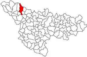 Комуна розташована на відстані[3] 456 км на північний захід від Бухареста, 51 км на північний захід від Тімішоари.