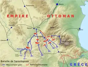 Грецька Фессалійська армія під командуванням принца Костянтина і начальника штабу генерала Дангліса включала в себе 6 дивізій (1-ша-6-та), 7-а дивізія була сформована в прикордонному тоді місті Лариса, кавалерійську бригаду і 4 окремих батальйони королівської гвардії (евзони) . Проти грецької Фессалійської армії Османська імперія виставила 7-й корпус під командуванням Хасана Тахсин-паші, що складався з трьох дивізій. Османи сподівалися втримати ці сильні гірські позиції, укріплення яких були модернізовані під керівництвом німецької військової місії перед початком війни.