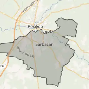 - Розташування муніципалітету Сарбазан на мапі Франції та сусідні муніципалітети