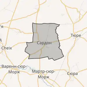 - Розташування муніципалітету Сардон на мапі Франції та сусідні муніципалітети