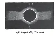 | 123 | 45 | 29 серпня 1867 | 13:13:07 | Повне | 41.1S 34.9W | -0.794 | 1.0344 | 189 | 2m 51s | |