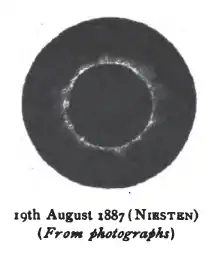 | 143 | 17 | 30 серпня 1905 | 13:07:26 | Повне | 42.5 пн.ш. 4.3 зх.д. | 0.5708 | 1.0477 | 192 | 3 хв 46 с | |