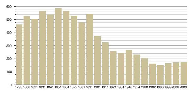 Динаміка населення (base Cassini de l'EHESS pour les nombres retenus jusque 1962[3], base Insee à partir de 1968 (population sans doubles comptes puis population municipale à partir de 2006)[4] · [5] ):