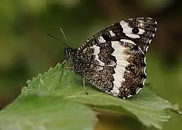 Невеликий метелик з розмахом крила 65-80 мм. Забарвлення чорне або темно-коричневе з широкою вертикальною білою смугою, що розташовується біля країв всіх крил, і другою білою смугою на нижніх крилах.