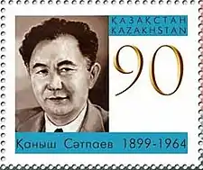 ![]() Поштова марка Казахстану «Каниш Сатпаєв — 90 років» серії «Життя чудових людей» | |