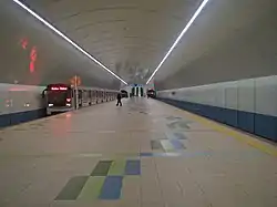 Односклепінна станція глибокого закладення (глибина закладення — 47 м) з однією острівною платформою. За станцією розташовані оборотні тупики.