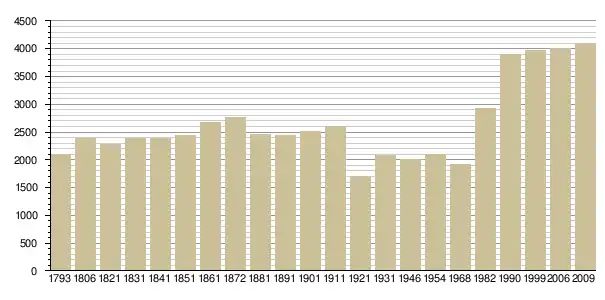 Динаміка населення (base Cassini de l'EHESS pour les nombres retenus jusque 1962[3], base Insee à partir de 1968 (population sans doubles comptes puis population municipale à partir de 2006)[4] · [5] ):