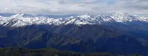 | Сванетський хребет, якщо дивитися з пагорба Тетнулді. | ||||